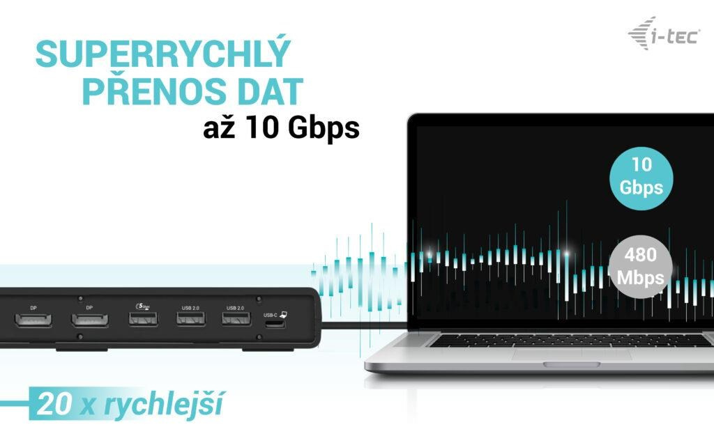 - Voliteľné klonovanie MAC adries a automatické zálohovanie dát pripojeného počítača (pri použití softvéru i-tec Docker Pro).