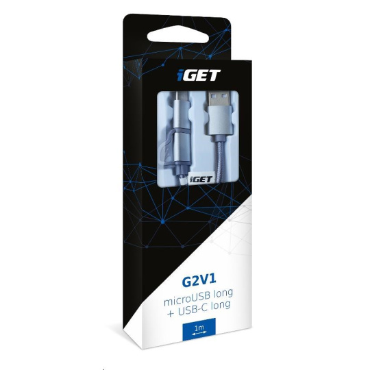 iGET G2V1 USB kábel 2v1, 1 m, strieborný, microUSB a USB-C, predĺžené konce