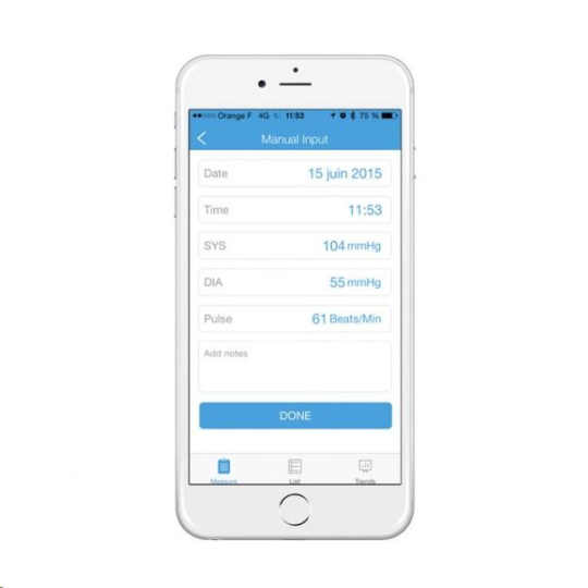 Môžete však bezdrôtovo a v priebehu niekoľkých sekúnd synchronizovať iHealth Track cez Bluetooth 4.0 s aplikáciou iHealth MyVitals vo vašom smartfóne a cloude výrobcu. Aplikácia zaznamenáva neobmedzenú históriu a umožňuje vám zdieľať výsledky s rodinou alebo lekárom.