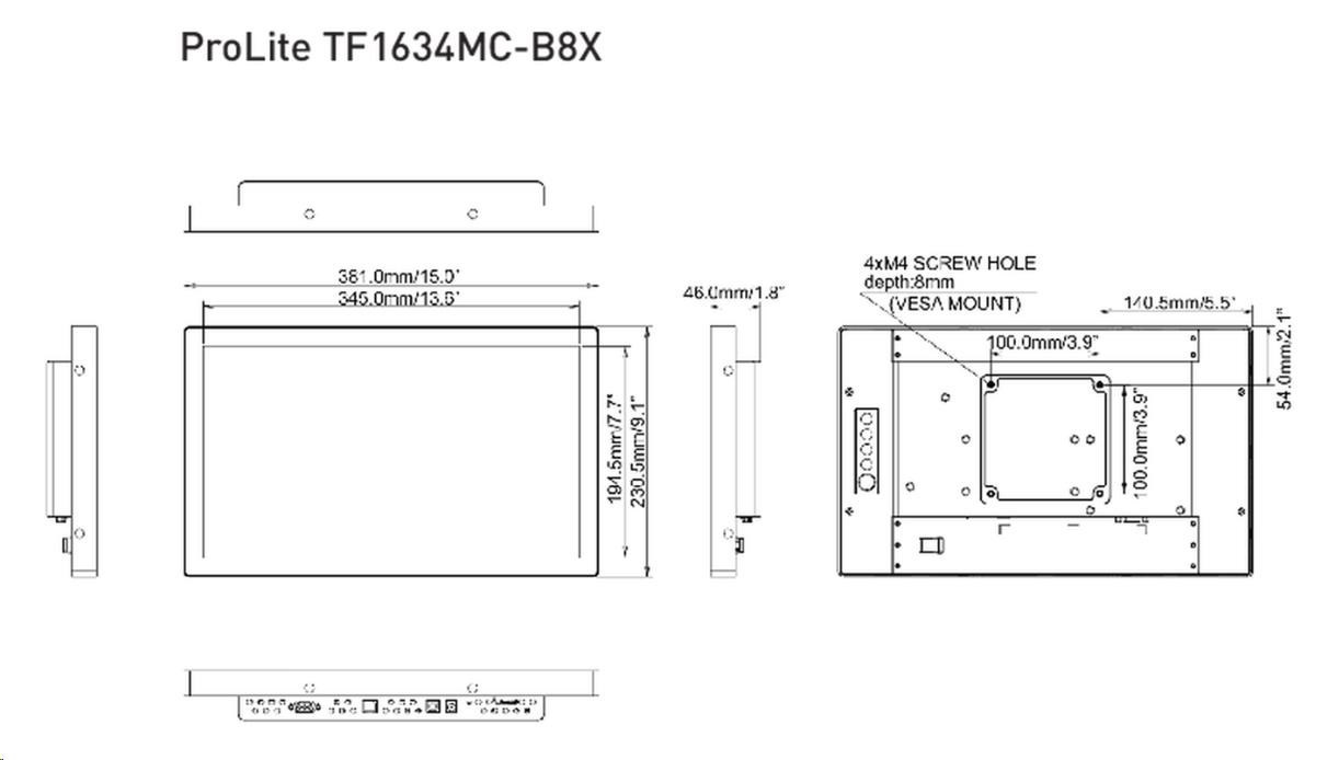 iiyama ProLite TF1634MC-B8X, 39.6 cm (15,6''), kapacitný, 10 TP, Full HD, čierny