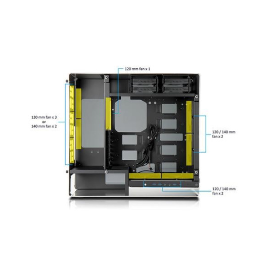 - Podporované formáty základných dosiek: 12" x 13.4" E-ATX, ATX, Micro-ATX, Mini-ITX