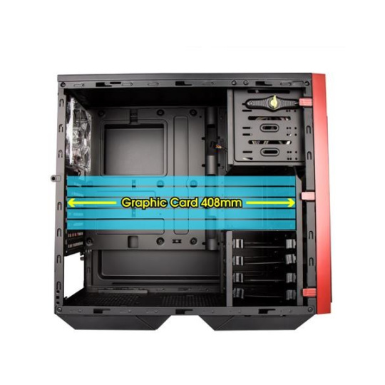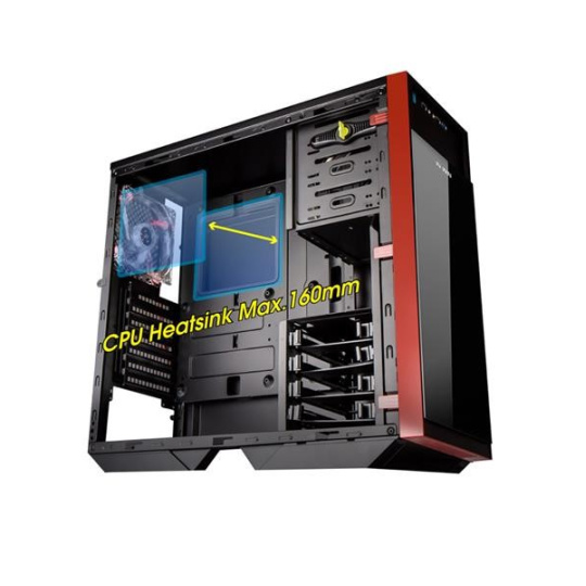 Vnútro skrine má dostatok priestoru na rozšírenie a pojme niekoľko špičkových grafických kariet s maximálnou dĺžkou 408 mm alebo chladič procesora do 170 mm. Dôležitou vlastnosťou je aj dostatočne veľký priestor na usporiadanie a vedenie káblov. V spodnej časti skrine je potom vhodne umiestnený odnímateľný prachový filter, ktorý zakrýva spodný ventilačný otvor.