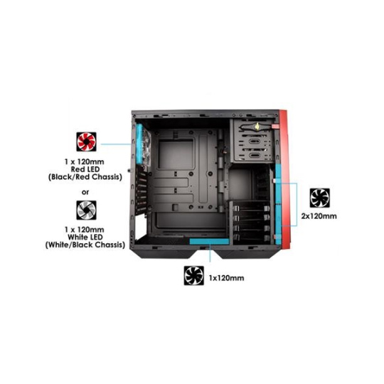 Počítačová skriňa série 503 dokonale ladí s najnovšími PC komponentmi a vytvára krásny minimalistický moderný dizajn. Predná strana je vybavená posuvným krytom, ktorý dokáže zakryť nainštalované disky a nechať vyniknúť detailný ventilačný otvor. Priehľadný bočný panel vám umožní nahliadnuť dovnútra, vaše oči upúta 120mm zadný LED ventilátor, ktorý je súčasťou skrine.