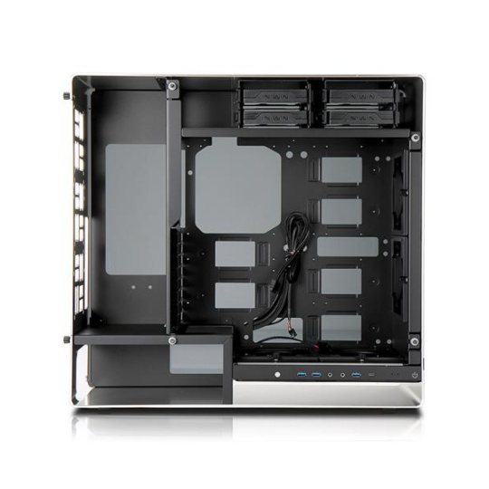 Oddelené pozície pre HDD a PSU zabezpečujú ideálne prúdenie vzduchu cez zadné vetracie otvory do vonkajšieho priestoru bez toho, aby teplému vzduchu bránili základné dosky alebo grafické karty.