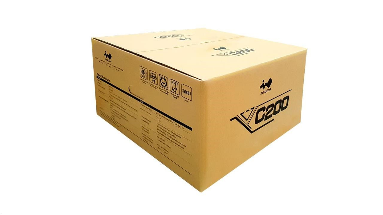 IN WIN case C200, mid tower, 166mm ventilátor, 2x2.5", 5x5.25", 1 x USB Type-C, 2x USB 3.0 / HD Audio / čierna