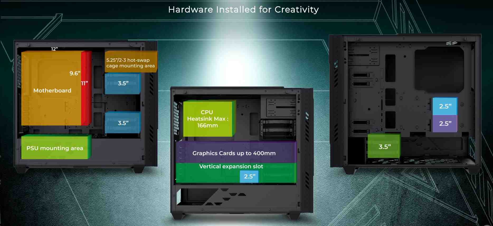 (dĺžka až 7 x 400 mm po vybratí 4 x 3.5'' klietky pre pevné disky )