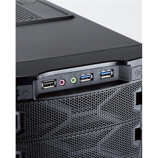 - Predný panel: 2x USB 3.0, 1x USB 2.0 , HD Audio