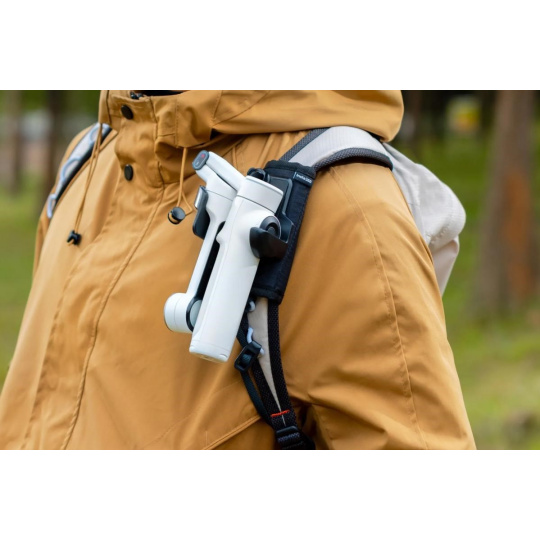 Držiak na upevnenie Flow 2 Pro na batoh. Bezpečnostná západka zabezpečuje pevné uchopenie. Kompatibilný s rôznymi šírkami popruhov, s protisklzovým silikonovým polstrovaním pre stabilitu.