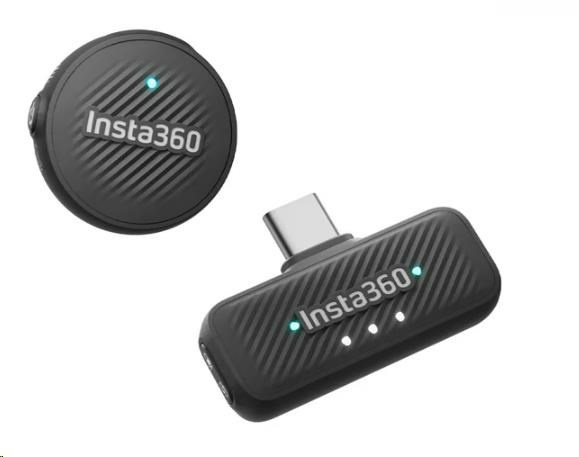 Insta360 Mic Air (TX + RX) je ultralehký bezdrátový mikrofonní set pro kamery a mobilní zařízení. Vysílač (TX) váží pouhých 7,9 g a měří 2,7 × 1,2 cm, umožňuje záznam zvuku v kvalitě 48 kHz / 24 bit a disponuje aktivním potlačením šumu, výdrží až 10 hodin a dosahem až 300 m. Připevnění pomocí magnetu, klipu nebo přívěsku. Přijímač (RX) se připojuje přes USB-C, umožňuje nahrávání na mobilní zařízení a nabízí navíc 3,5mm vstup pro externí mikrofon. Kompatibilní s kamerami Insta360 X5 a Ace Pro 2, smartphony, tablety a dalšími zařízeními s USB-C.