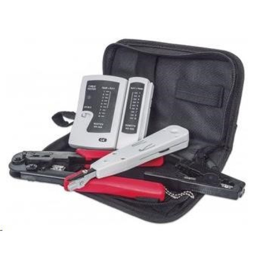 Intellinet 4-dielna sada sieťového náradia: tester káblov, krimpovacie kliešte, krimpovací nástroj LSA, odizolovač