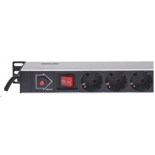 Intellinet Vertikálny 12-cestný napájací panel pre montáž do stojana - nemecký typ, distribučný panel, 12x DE zásuvka, 1.6 m kábel