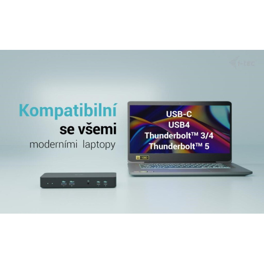 - Dokovacia stanica je kompatibilná so všetkými modernými notebookmi vybavenými portami USB-C, USB4 alebo Thunderbolt™ 3/4/5.