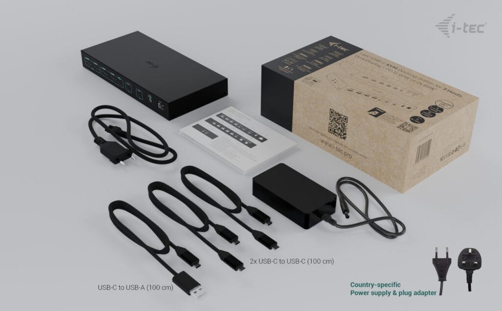 i-tec USB-C KVM Dock PRO pre tri hosty, Duálne video, s 2x Power Delivery, max 92W