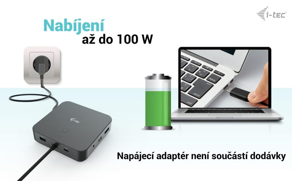 Poskytuje až 100W Power Delivery pre kompatibilné notebooky a tablety s rozhraním USB-C, USB4 a Thunderbolt. Hostiteľské zariadenie musí podporovať USB-C Power Delivery.