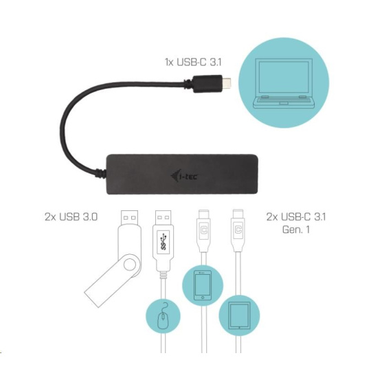 i-tec USB-C Metal HUB 2x USB 3.0 + 2x USB-C