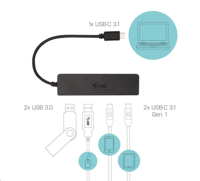 iTec USB-C rozbočovač kovový 4-portový
