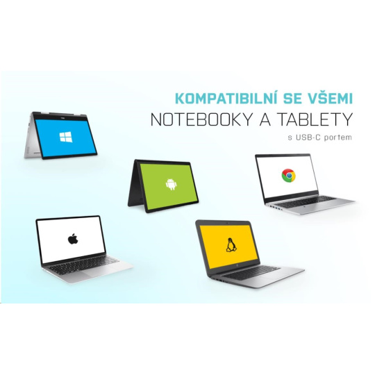 Rozbočovač nevyžaduje inštaláciu ovládačov, stačí ho pripojiť káblom USB-C a hneď ho môžete začať používať. HUB má zabudovanú prepäťovú ochranu počítača v prípade skratu na periférnych zariadeniach. Spätná kompatibilita s USB 2 je samozrejmosťou.0. Vďaka kompaktným rozmerom a nízkej hmotnosti ho môžete nosiť stále so sebou v taške - kovový povrch navyše chráni náboj pred poškodením a poškriabaním.