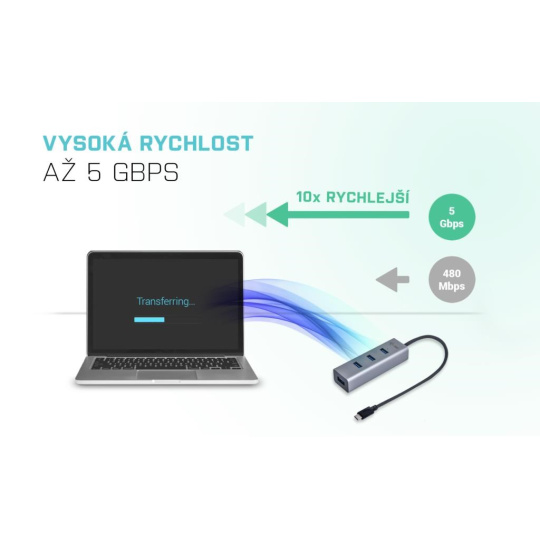 Rozbočovač nevyžaduje inštaláciu ovládačov, stačí ho pripojiť káblom USB-C a hneď ho môžete začať používať. HUB má zabudovanú prepäťovú ochranu počítača v prípade skratu na periférnych zariadeniach. Spätná kompatibilita s USB 2 je samozrejmosťou.0. Vďaka kompaktným rozmerom a nízkej hmotnosti ho môžete nosiť stále so sebou v taške.
