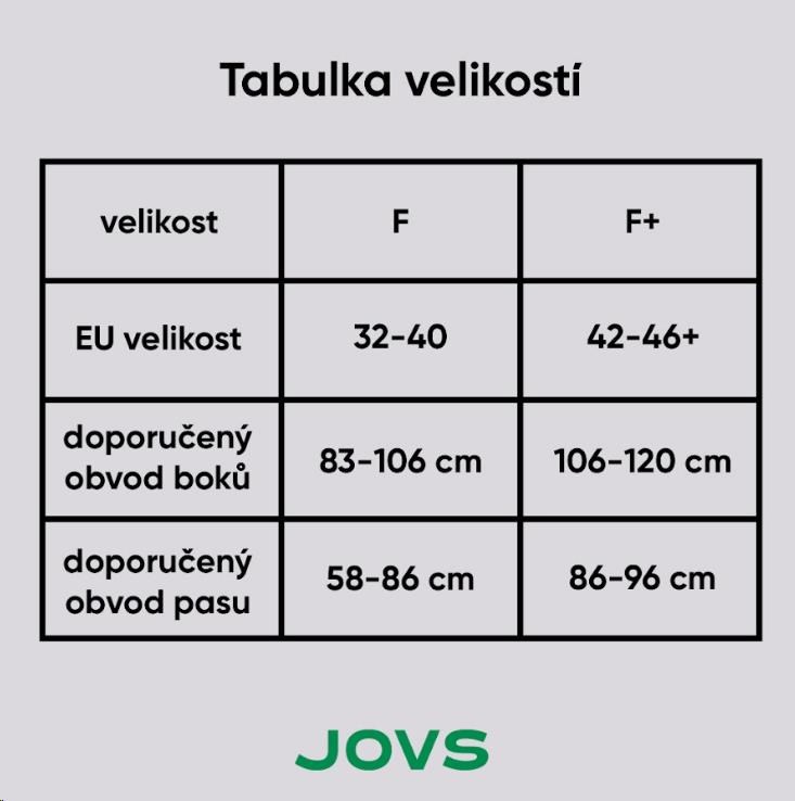 • Veľkosti: F (pre obvod bokov 66-85 cm), F+ (pre obvod bokov 80-90 cm)