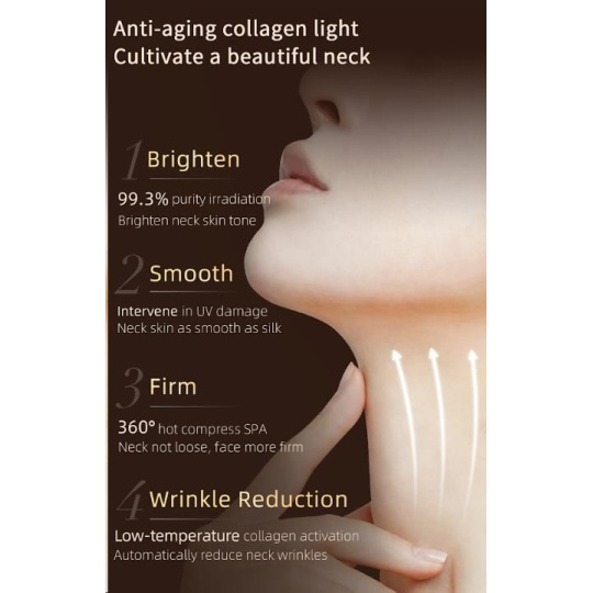 Táto unikátna maska bola navrhnutá tak, aby dokonale pokryla nielen krk, ale aj celý hrudník a hornú časť chrbta. Kľúčový rozdiel oproti bežným maskám spočíva v cielene, konturovanom dizajne, vďaka ktorému tesne obopína a ošetruje oblasť krku, dekoltu a hornej časti chrbta. Využíva klinicky overenú silu vysoko čistého červeného svetla o vlnovej dĺžke 660nm, ktoré je štandardom v profesionálnej dermatologickej starostlivosti. Svetlo preniká hlboko do pokožky, kde stimuluje produkciu kolagénu, zrýchľuje regeneráciu buniek a pomáha napraviť poškodenia spôsobené UV žiarením. Výsledkom je viditeľne pevnejšia, hladšia a farebne zjednotená pokožka.