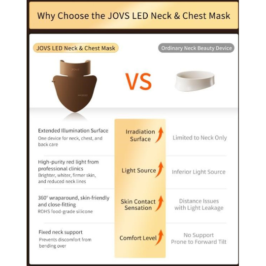 Péče o pleť nekončí u tváre. Objavte profesionálne ošetrenie pre často opomínané partie a doprajte si luxus, ktorý vaša pokožka na krku, v dekolte a na chrbte pocíti aj uvidí. Predstavujeme vám svetelnú masku JOVS, inovatívne riešenie od prémiovej značky, ktorá prináša technológie z estetických kliník priamo k vám domov. Zbohom nedokonalostiam a odhaľte mladistvejšiu a žiarivejšiu pokožku bez nutnosti drahých a časovo náročných procedúr v salónoch.