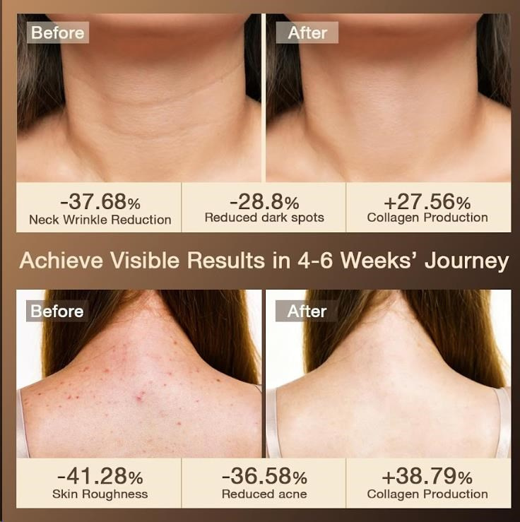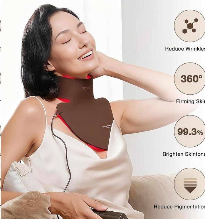 Táto unikátna maska bola navrhnutá tak, aby dokonale pokryla nielen krk, ale aj celý hrudník a hornú časť chrbta. Kľúčový rozdiel oproti bežným maskám spočíva v cielene, konturovanom dizajne, vďaka ktorému tesne obopína a ošetruje oblasť krku, dekoltu a hornej časti chrbta. Využíva klinicky overenú silu vysoko čistého červeného svetla o vlnovej dĺžke 660nm, ktoré je štandardom v profesionálnej dermatologickej starostlivosti. Svetlo preniká hlboko do pokožky, kde stimuluje produkciu kolagénu, zrýchľuje regeneráciu buniek a pomáha napraviť poškodenia spôsobené UV žiarením. Výsledkom je viditeľne pevnejšia, hladšia a farebne zjednotená pokožka.