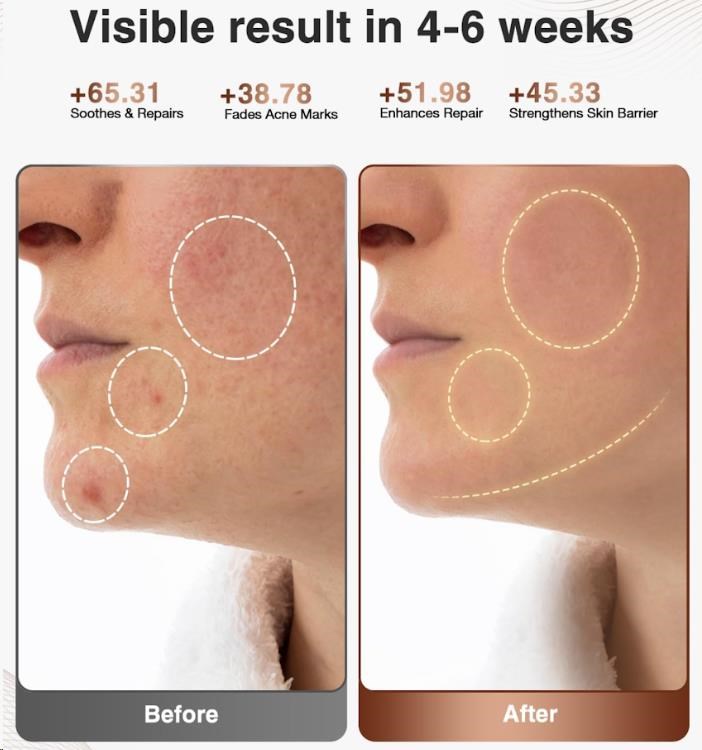 - Viditelné výsledky za 4-6 týdnů: Pravidelné používání prokazatelně redukuje akné, vrásky, pigmentaci a zlepšuje elasticitu pleti.