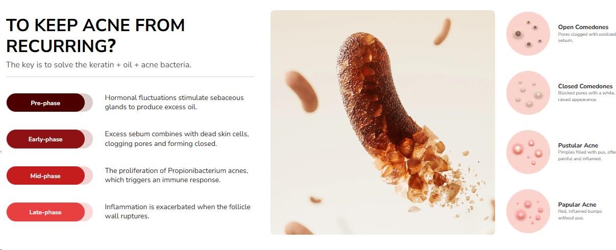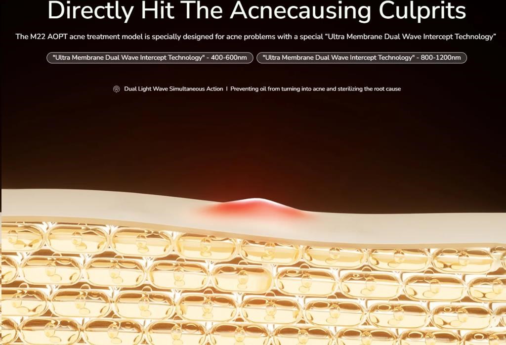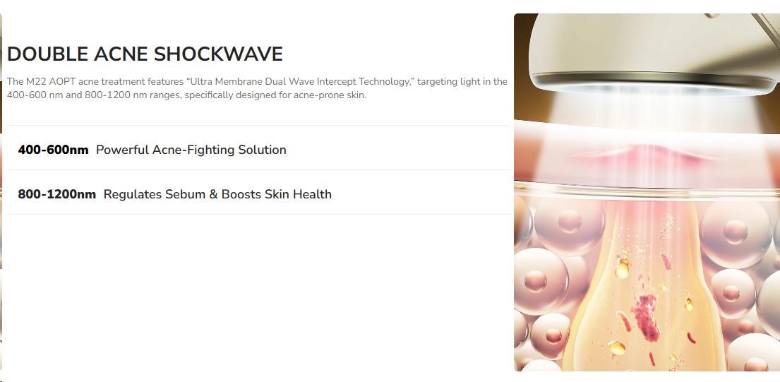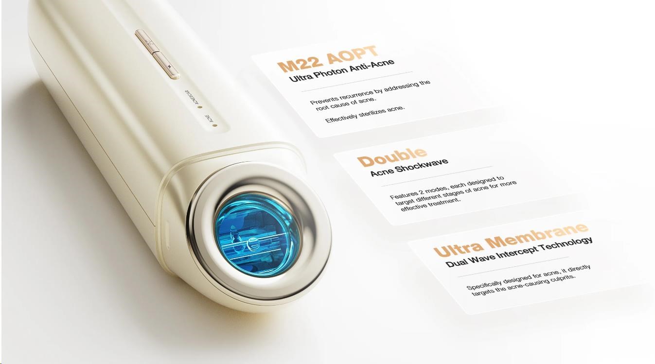 Tento inovatívny prístroj využíva unikátnu "svetelnú-biologickú" technológiu pre maximálny efekt. Dvojitá rázová vlna intenzívneho pulzného svetla preniká hlboko do pokožky, kde ničí baktérie Propionibacterium acnes a reguluje produkciu mazu.