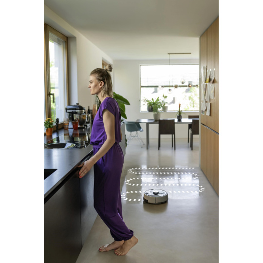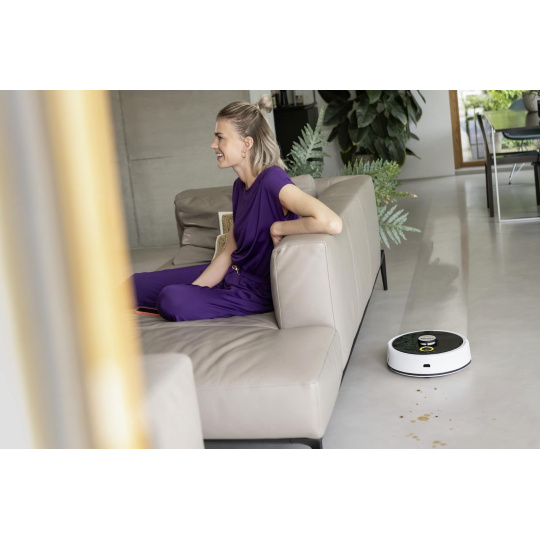 Podlahy vyčistíte stlačením jediného tlačidla: inteligentná robotická umývačka RCF 3 sa od teraz postará o inak únavné a časovo náročné vytieranie tvrdých podláh. Vďaka overenej technológii valca odstraňuje RCF 3 nielen odolnú špinu alebo zaschnuté tekutiny, ale tiež zbiera prach a drobné nečistoty. Pri tom automaticky rozpozná koberce a obratne sa im vyhne. RCF 3 má dve nádrže, ktoré mu umožňujú neustále zvlhčovať čistiaci valec čistou vodou a zvlášť zbierať nečistoty do nádrže na špinavú vodu. Tiež ľahké suché nečistoty sa ľahko zachytia a dopraví do nádrže na špinavú vodu. Pomocou praktickej ovládacej aplikácie je možné nastaviť rôzne režimy čistenia. Robota je teda možné veľmi flexibilne prispôsobiť najrôznejším potrebám a požiadavkám. Pre upratovanie sa robot pohodlne spúšťa prostredníctvom aplikácie alebo stlačením tlačidla na zariadení. Ak RCF 3 potrebuje pomoc, oznámi vám to hlasovým výstupom alebo prostredníctvom aplikácie. Odporúča sa umiestniť nabíjaciu stanicu na povrch, ktorý nie je vyrobený zo dreva, aby sa predišlo riziku poškodenia drevenej podlahy vlhkým valcom pri parkovaní robota stanici po dokončení čistenia.