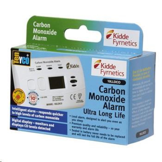 Hlásič úniku jedovatého plynu Kidde K10LLDCO je vybavený priemyselným senzorom a integrovanou lítiovou napájacou batériou s životnosťou a zárukou 10 rokov. Jeho prevádzková doba je tak o 40 % dlhšia, než je u väčšiny konvenčných alarmov CO bežne ponúkaných na našom trhu.