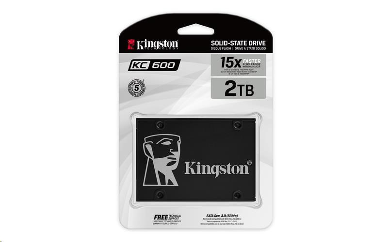 Kingston KC600 je plnokapacitný SSD disk navrhnutý pre pozoruhodný výkon a optimalizovaný tak, aby zabezpečil rýchlu odozvu funkčného systému s neuveriteľným časom spúšťania, nahrávania a prenosu. Dodáva sa vo veľkosti 2,5" s rozhraním SATA Rev. 3.0 so spätnou kompatibilitou. KC600 využíva najnovšiu technológiu 3D TLC NAND a zároveň podporuje plne zabezpečený balík, ktorý zahŕňa 256-bitové hardvérové šifrovanie AES, TCG Opal a eDrive. Má rýchlosť čítania/zápisu až 550/520 MB/s* na efektívne ukladanie vašich dát až do veľkosti 2 TB.** K dispozícii je súprava, ktorá poskytuje všetko potrebné na bezproblémovú a jednoduchú inštaláciu a aktualizáciu stolného alebo prenosného počítača.