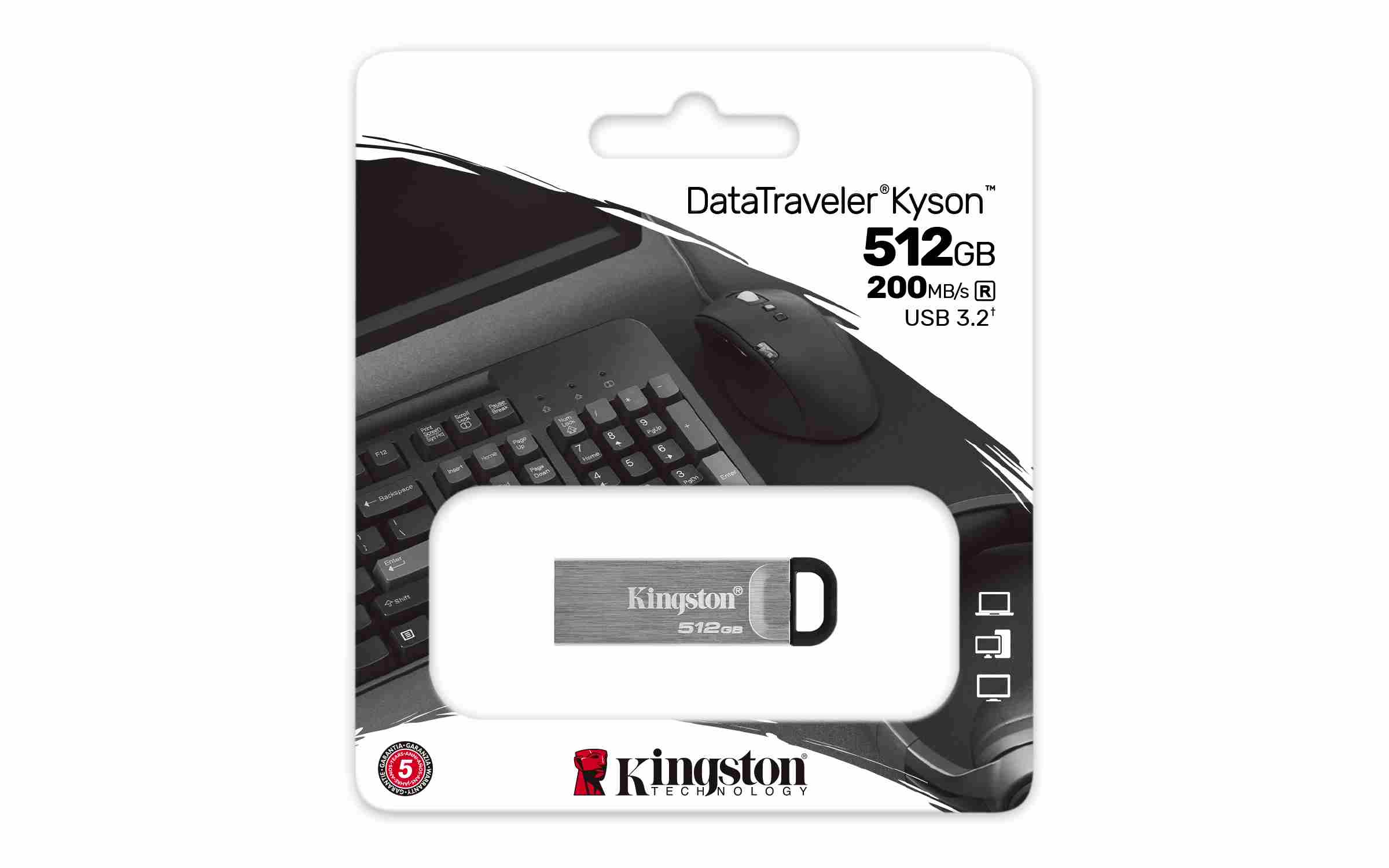 Kingston DataTraveler® Kyson je vysoko výkonný USB flash disk typu A s extrémne vysokou prenosovou rýchlosťou až 200 MB/s pri čítaní a 60 MB/s pri zápise, čo umožňuje rýchle a pohodlné prenosy súborov. S úložiskom až 512 GB môžete ukladať a zdieľať fotografie, videá, hudbu a ďalší obsah na cestách. Kovové prevedenie bez viečka vám ušetrí problémy so stratením okuliarov a funkčné pútko umožňuje jednoduché nosenie, nech ste kdekoľvek.