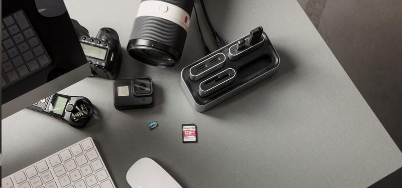 Stanica workflows a čítačky od Kingston poskytujú flexibilný systém na prenos videa, fotografií a zvuku z viacerých zdrojov naraz.* Urýchlite svoj pracovný proces postprodukcie a vytvorte nastavenie na prekladanie súborov, ktoré vyhovuje vašim potrebám. Dock stanice workflows je prispôsobiteľný, takže môžete použiť iba USB miniHub, SD čítačky alebo microSD čítačky, ktoré si vyžaduje vaša natáčacia scéna. Či už natáčate v 4K/8K s multi-kamerou s prenosnými nahrávačmi zvuku pre každého hostiteľa alebo natáčate B-Roll s dronmi a GoPro kamerami, môžete súčasne pripojiť až štyri čítačky k docku a rýchlo prenášať zábery. Stanica workflows a čítačky podporujú rýchlosti USB 3.2, vďaka čomu sa dostanete k procesu postprodukcie rýchlejšie než kedykoľvek predtým. Pre väčšiu flexibilitu je možné čítačky kariet použiť aj na cestách. Keď potrebujete natáčať na mieste, stačí vložiť hub alebo čítačky, ktoré potrebujete, do tašky a pripojiť ich k notebooku pomocou priloženého kábla USB-C®.