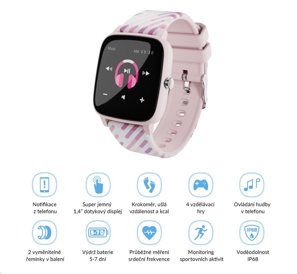 Rozhranie hodín a aplikácie je úplne v češtine, takže ovládanie nebude pre dieťa žiadny problém. Hodinky je možné prepínať do ďalších jazykov a podporovať tak výučbu angličtiny a ďalších jazykov.