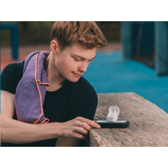 Dots2 s tebou zvládnu každý deň – či v kancelárii alebo za mestom. Puzdro vydrží aj tvrdšie podmienky a vďaka odolnosti voči potu sa o slúchadlá nemusíš báť ani pri športe. Navyše keď ťa naháňajú kamoši alebo šéf, hovor si jednoducho pustíš do špunov a ruky ti ostanú voľné. S kvalitným mikrofónom ťa druhá strana počuje úplne jasne a telefón už nebudeš musieť nosiť pri uchu – a na to sa veľmi rýchlo zvyká! Zvlášť keď ti pošleme 3 veľkosti špunov, takže si Dots2 dokonale prispôsobíš. Prehrávať cez slúchadlá môžeš aktivovať aj hlasového asistenta vo smartfóne.