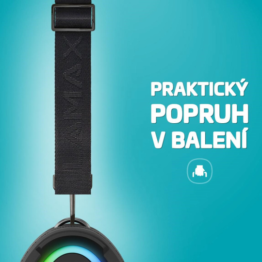 Je jedno, či máš playlist na párty na jednom zariadení a obľúbený podcasty na inom, cez najmodernejšie Bluetooth 5.3 sa reprák automaticky spáruje s akýmkoľvek zariadením a frčí až na vzdialenosť 15 metrov. Trápiť ťa nemusia ani formáty, táto mašinka podporuje MP3, WAV, FLAC a široká je aj škála podporovaných pripojení - Micro SD, USB-A, 3,5 mm AUX. Parádnou záležitosťou je tiež možnosť naladenia FM rádia napríklad pre prípady, keď si zabudneš vlastnú muziku. A keďže každá udalosť si žiada správnu atmošku, máš na výber z 5 nastaviteľných LED efektov.