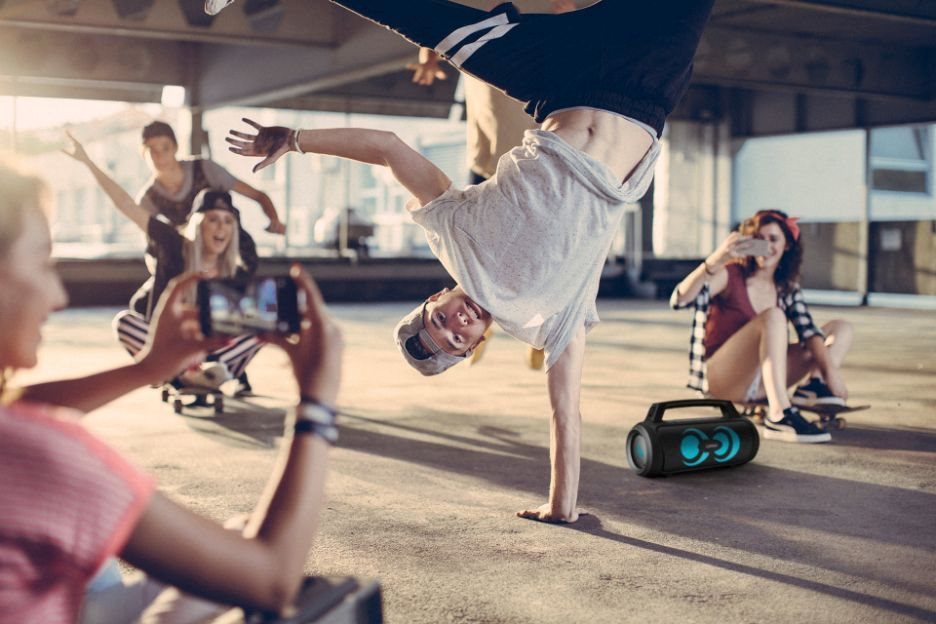 Na jedno nabitie funguje reproduktor až 15 hodín, čo stačí na slušnú párty aj na výlety. Dobíjanie prebieha cez USB-C kábel.