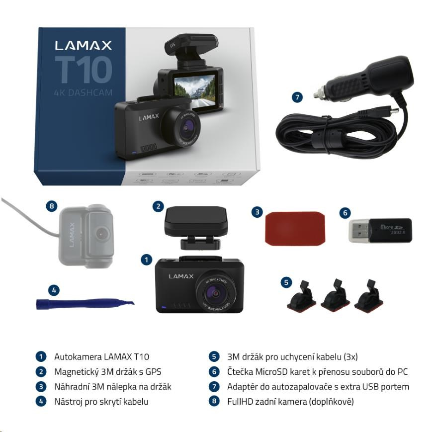 Staré a nepotrebné zábery sa síce mažú automaticky, ale aj tak sa hodí mať dostatok priestoru na všetky záznamy. V balení nájdete aj čítacie zariadenie microSD kariet pre počítač.