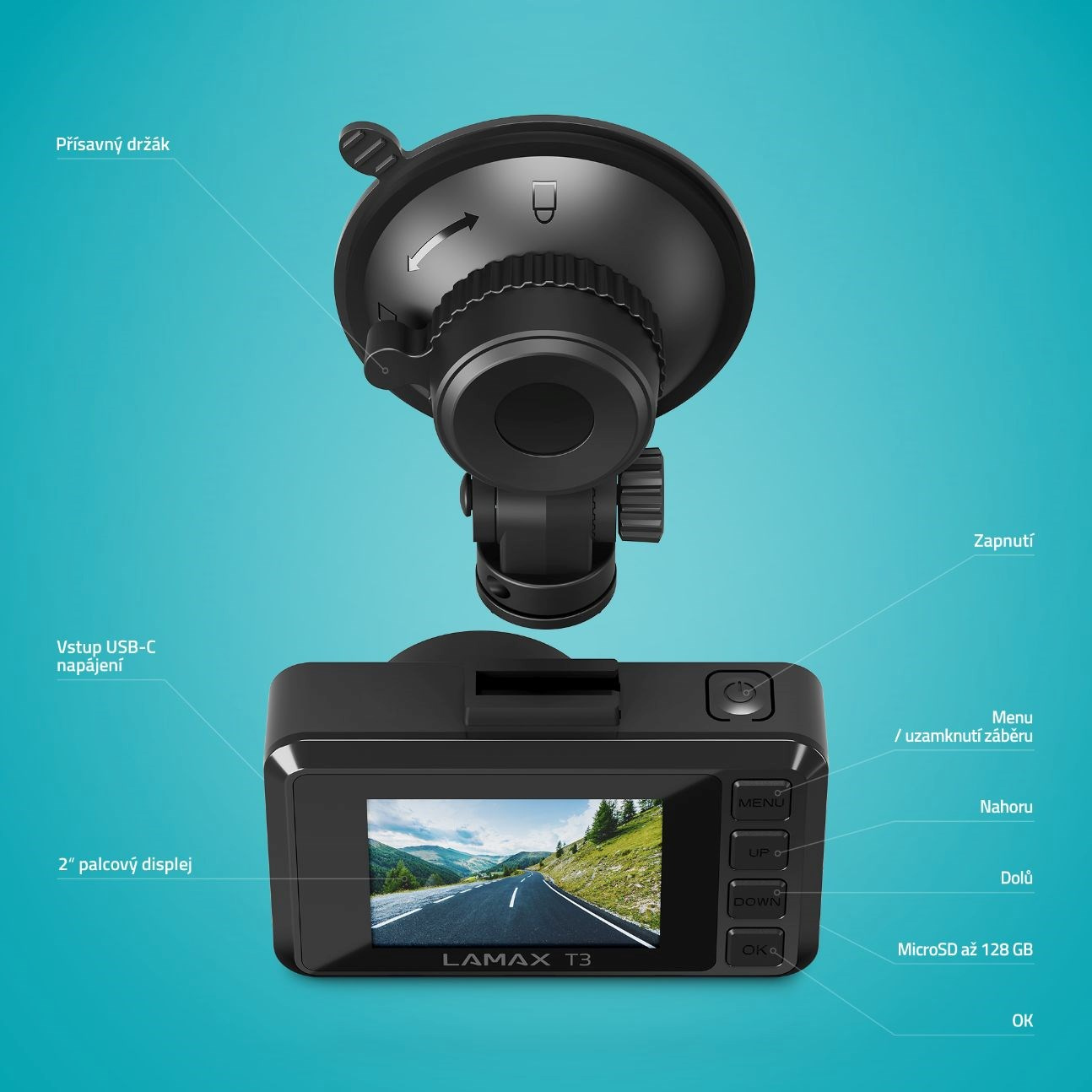 Prevádzka na cestách si žiada niekedy naozaj pevné nervy a je taktické byť pripravený na všeličo. Keď chceš predísť hádkam pri prípadnej kolízii alebo si jednoducho len zdokumentovať krásy, ktoré po ceste vidíš, autokamera LAMAX T3 ti bude zdatne sekundovať. Pokiaľ učíš nových vodičov, zaobstaráš s ňou aj super výukový materiál z reálnej prevádzky. Zábery ukladá kamera v reálnom Full HD a vďaka G-senzoru ich automaticky ochráni, aby zostali po ruke pre prípad potreby. Ochranu záberov môžeš zapnúť aj manuálne stlačením tlačidla. Všetko si potom pohodlne uložíš na microSD s kapacitou až 128 GB. Neboj sa, že by ti kamera skolabovala v najmenej vhodnú chvíľu, namiesto batérie je vybavená superkondenzátorom, ktorý je odolnejší. Pokiaľ je kamera napojená na trvalé napájanie, parkovací režim sa postará o nonstop monitoring vozidla. Na prehľadnom 2” displeji vidíš všetko potrebné, napríklad pri nastavovaní funkcií v slovenskom menu, čo zvládneš jednoducho ako nič. Dizajnovo vymazlená kamera skvele sadne do prísavného držiaka, ktorý ju nepustí ani pri dravšej jazde. Ešte je fajn vedieť, že máš k dispozícii USB-C konektor a za slušnú cenu dostaneš super krytie chrbta.