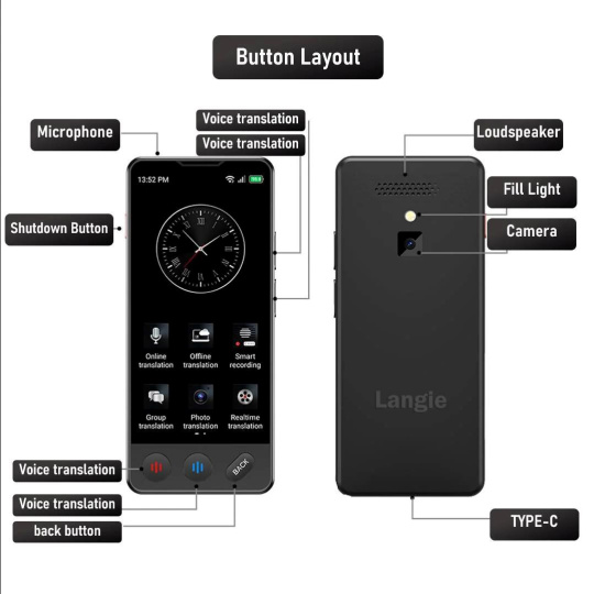 Obojsmerný preklad s priamym nahraným zvukovým prekladom hlasu, vďaka ktorému už nebude žiaden problém pre Vás sa dorozumieť počas cestovania po svete. Radi cestujete a spoznávate nové miesta? Potrebujete preložiť nejakú reč? Určite si spomeniete na nepríjemne situácie, ktoré vznikli kvôli jazykovej bariére. Tomu je už navždy koniec! S týmto prekladačom viet LANGIE obsahujúcim až 138 jazykov vrátane slovenčiny či češtiny, bude komunikácia v zahraničí pre Vás maličkosť. Zaujímavá bude určite aj výdrž batérie, ktorá je až do približne 15 dní v režime standby.