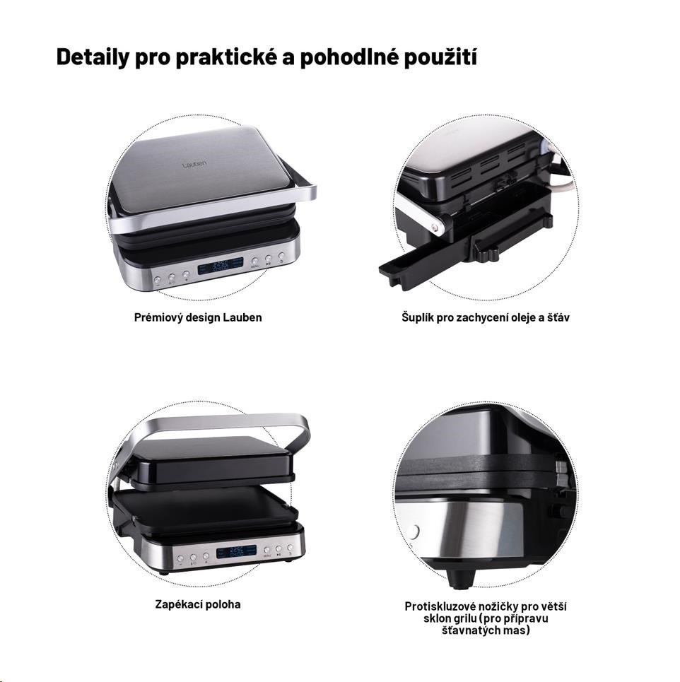 Lauben Contact Grill Deluxe 2000ST – Stolný kontaktný gril s 6 automatickými programami, odnímateľnými platničkami a LED displejom