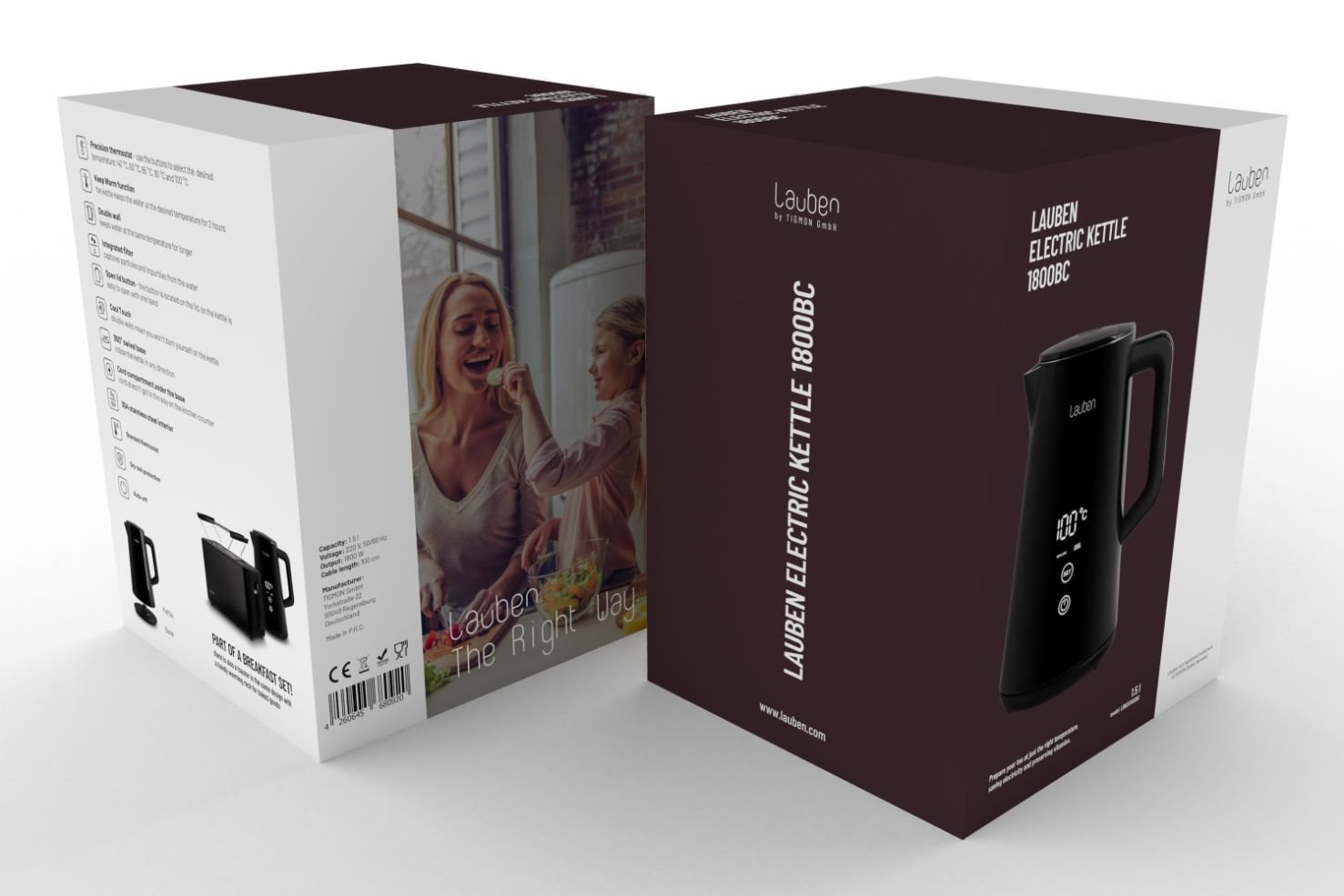 Nepostrádateľnou súčasťou kuchýň sa stala rýchlovarná kanvica. Aj tá však môže byť viac než len užitočný domáci spotrebič. Lauben Elektrická Rýchlovarná Kanvica 1800BC v dokonalom čiernom dizajne s veľkým digitálnym displejom je veľmi praktická a zároveň pôsobí ako štýlový dizajnový doplnok. Vodu v nej ohrievate presne na požadovanú teplotu a vďaka presnému termostatu a funkcii Keep Warm ju udrží na rovnaké teplote až po dobu 2 hodín. Ani potom jej dvojité steny nedovolia rýchlo ochladiť. Údržba kanvice je jednoduchšia než kedykoľvek predtým, integrovaný filter zachytí mnoho nečistôt. Ako vždy myslíme aj na bezpečnosť, preto technológia Cool Touch zabraňuje popáleniu pri kontakte s kanvicou a bezpečnostná poistka prístroj ochráni proti prehriatiu a vareniu bez vody. Samozrejmosťou je základňa otočná o 360° s priestorom na ukrytie kábla.