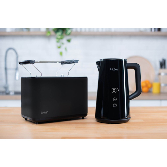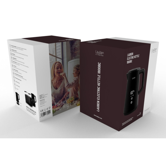 Voda presne na mieru nápojomNepostrádateľnou súčasťou kuchýň sa stala rýchlovarná kanvica. Aj tá však môže byť viac než len užitočný domáci spotrebič. Lauben Elektrická Rýchlovarná Kanvica 1800BC v dokonalom čiernom dizajne s veľkým digitálnym displejom je veľmi praktická a zároveň pôsobí ako štýlový dizajnový doplnok. Vodu v nej ohrievate presne na požadovanú teplotu a vďaka presnému termostatu a funkcii Keep Warm ju udrží na rovnaké teplote až po dobu 2 hodín. Ani potom jej dvojité steny nedovolia rýchlo ochladiť. Údržba kanvice je jednoduchšia než kedykoľvek predtým, integrovaný filter zachytí mnoho nečistôt. Ako vždy myslíme aj na bezpečnosť, preto technológia Cool Touch zabraňuje popáleniu pri kontakte s kanvicou a bezpečnostná poistka prístroj ochráni proti prehriatiu a vareniu bez vody. Samozrejmosťou je základňa otočná o 360° s priestorom na ukrytie kábla.