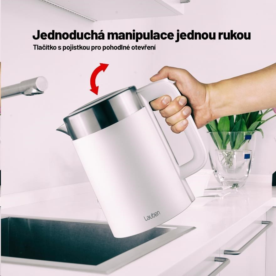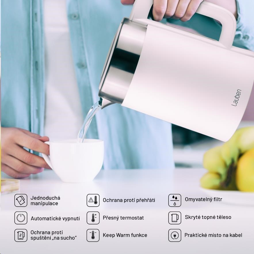 Poradí si s čajom, kávou a dojčenskou výživouLauben Electric Kettle EK17WS je dizajnová rýchlovarná kanvica s nastaviteľnou teplotou ohrevu vody a Keep Warm funkciou. Možnosť nastavenia teploty vody v kuchyni určite oceníte. Potrebujete zaliať zelený čaj? Už nikdy nemusíte čakať, kým voda vychladne, stačí si zvoliť preferovanú teplotu na prehľadnom LCD displeji.