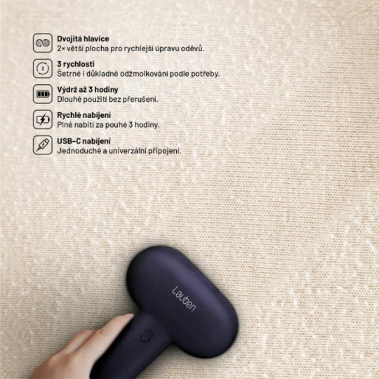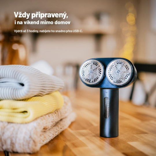 Nemusíte sa obmedzovať. Vďaka dlhej výdrži batérie môžete upravovať celú skriňu bez prerušenia. Či už sa staráte o svoj šatník doma, alebo si balíte kufor na cesty, odstraňovač žmolkov Lauben to zvládne. Batéria sa vráti na 100 % už za tri hodiny, takže odstraňovač bude pripravený, kedykoľvek ho budete potrebovať – žiadne zbytočné zdržiavanie. Umožňuje to univerzálny konektor USB-C, vďaka ktorému môžete nabíjať odkiaľkoľvek – z powerbanky, notebooku aj adaptéra. Žiadne špeciálne káble, žiadne starosti.