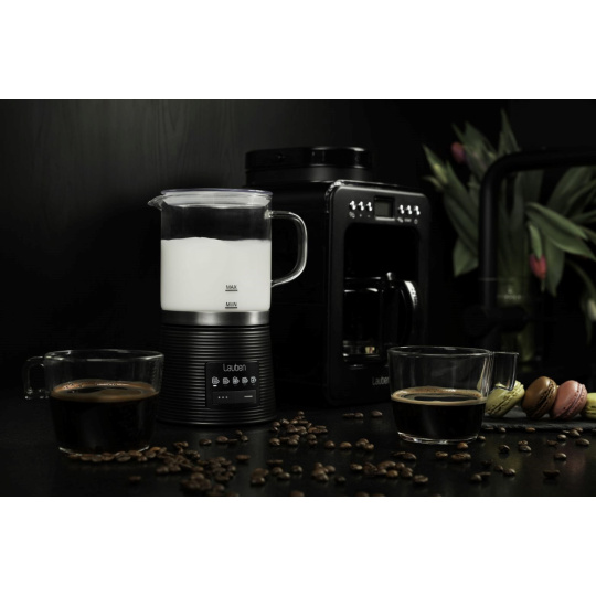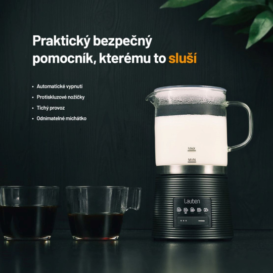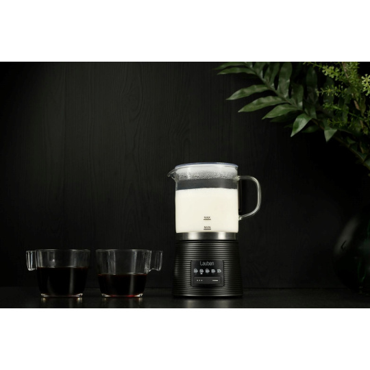 Nadšenci nápojov s dokonale našľahaným mliekom si teraz vďaka napäňovaču Lauben Glass Milk Frother 600BG vychutnajú aj v domácom prostredí či v práci mliečnu penu ako od baristu. Sklenená nádoba umožňuje sledovať proces prípravy, je zdravé a ľahké na údržbu, stačí umyť alebo vložiť do umývačky. Údržbu uľahčuje aj odnímateľné miešatko. Pre lepšiu manipuláciu má základňa schopnosť otáčať sa o 360°. Pomocou variácií režimov prístroj zvláda teplé aj studené našľahanie či miešanie a špeciálny režim vykúzli horúcu čokoládu. So svojimi baristickými schopnosťami nevyrušíte spiacu rodinu ani kolegov v kancelárii, pretože prevádzka napäňovača je veľmi tichá. Tento praktický dizajnový kúsok ohreje 250 ml a napení 150 ml mlieka. Protisklzové nôžky držia prístroj na mieste, k bezpečnosti prispieva aj funkcia automatického vypnutia.