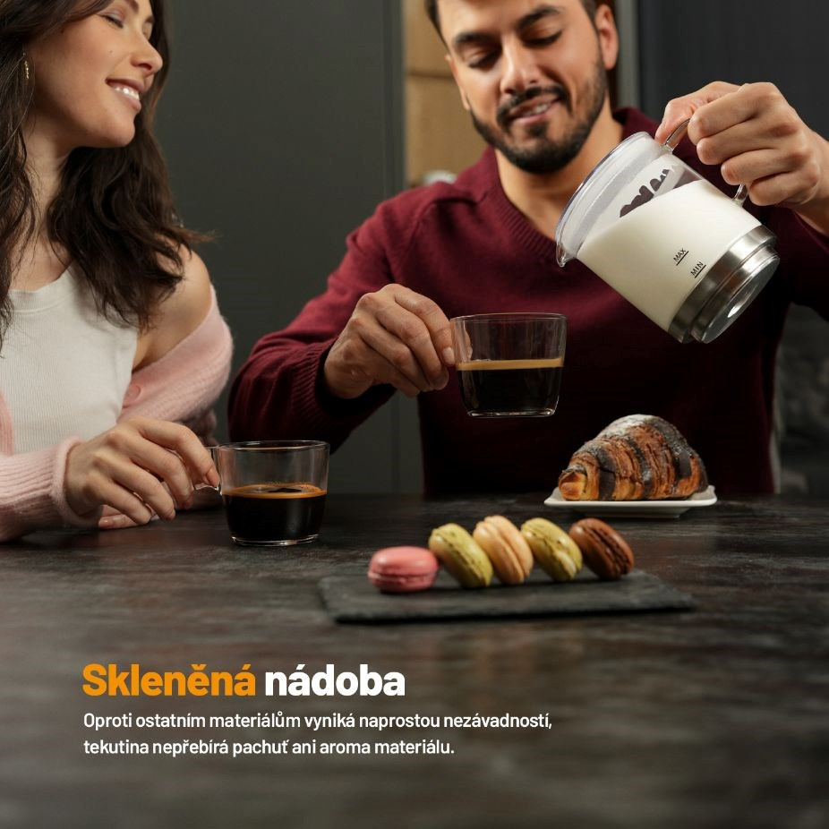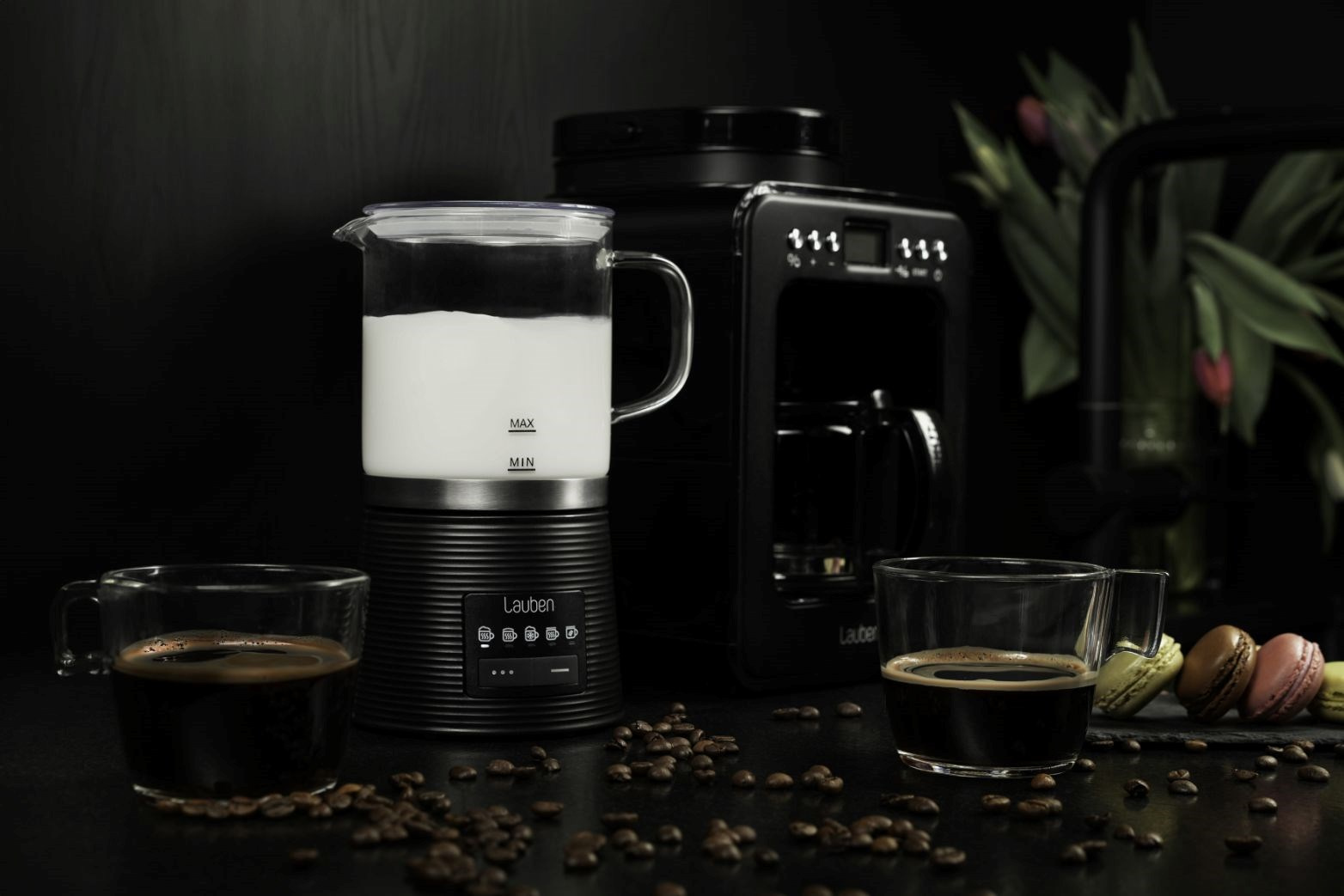 Nadšenci nápojov s dokonale našľahaným mliekom si teraz vďaka napäňovaču Lauben Glass Milk Frother 600BG vychutnajú aj v domácom prostredí či v práci mliečnu penu ako od baristu. Sklenená nádoba umožňuje sledovať proces prípravy, je zdravé a ľahké na údržbu, stačí umyť alebo vložiť do umývačky. Údržbu uľahčuje aj odnímateľné miešatko. Pre lepšiu manipuláciu má základňa schopnosť otáčať sa o 360°. Pomocou variácií režimov prístroj zvláda teplé aj studené našľahanie či miešanie a špeciálny režim vykúzli horúcu čokoládu. So svojimi baristickými schopnosťami nevyrušíte spiacu rodinu ani kolegov v kancelárii, pretože prevádzka napäňovača je veľmi tichá. Tento praktický dizajnový kúsok ohreje 250 ml a napení 150 ml mlieka. Protisklzové nôžky držia prístroj na mieste, k bezpečnosti prispieva aj funkcia automatického vypnutia.