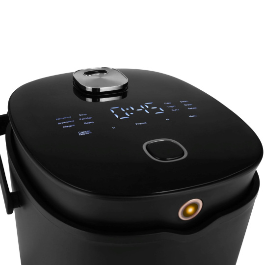 Ovládanie multifunkčného rýžovaru zvládne úplne každý pomocou prehľadného dotykového displeja, kde stlačením tlačidla aktivujete vybranú funkciu alebo si manuálne nastavíte hodnoty podľa potreby. Manipuláciu s rýžovarom uľahčuje praktické madlo. V 2l hrnci s nepriľnavým povrchom si pohodlne pripravíte jedlo pre celú rodinu alebo spoločenské stretnutie. Stačí ho vybrať a vložiť do umývačky, žiadne zložité drhnutie. Súčasťou balenia je aj praktická odmerka a lyžica na ryžu.