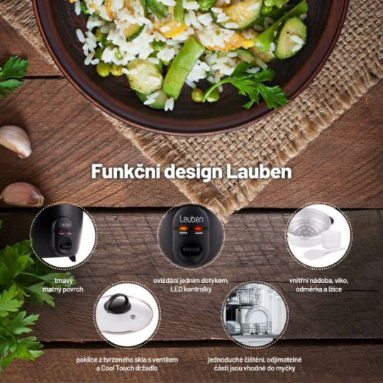Uvariť vláčnu a nadýchanú ryžu je často omnoho ťažšie, než by sa mohlo zdať. S ryžovarom Lauben je to ale rovnako jednoduché, ako si túto obľúbenú prílohu vychutnať. Jeho využitie je všestranné, pripravíte v ňom akýkoľvek druh ryže presne al dente, stlačením jedného tlačidla. Ale poradí si aj s inými surovinami. V priebehu niekoľkých minút za vás zvládne lahodné polievky, krémovú cereálnu kašu alebo strukoviny bohaté na bielkoviny. Vďaka praktickému nadstavcu na parenie, môžete v ryžovare pripravovať aj zeleninu v pare.