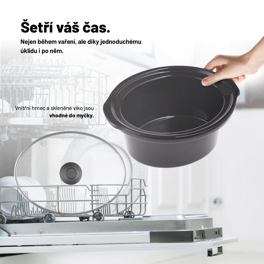 Vnútornú nádobu aj pokrievku je možné bez problému umývať v umývačke riadu.